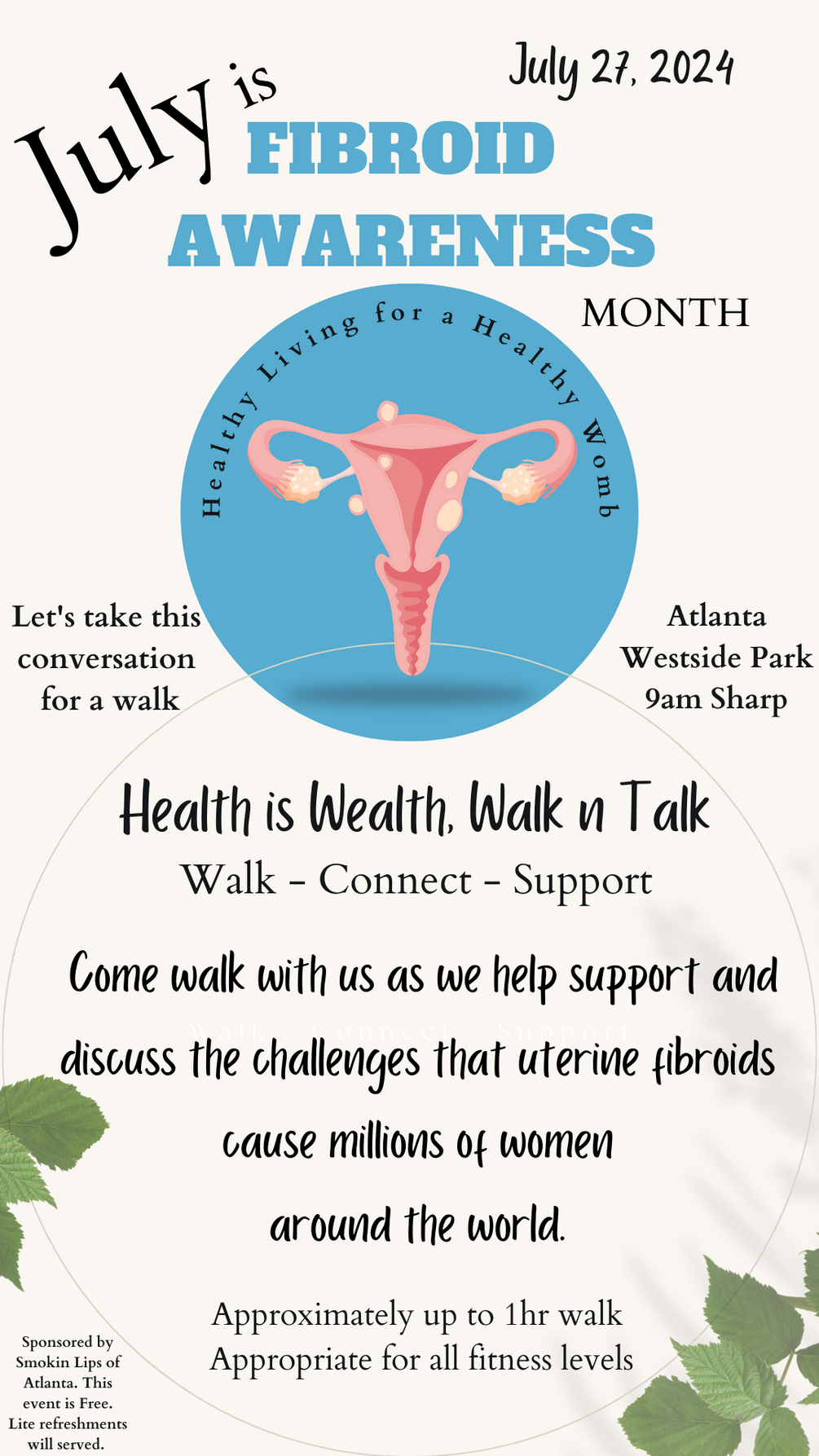 Come walk with us as we help support and discuss the challenges that uterine fibroids cause millions of women around the world. Let’s take this conversation for a walk starting at the Westside Atlanta Park 9am - 12pm. Text Healed to 404.836.0900 to RSVP for this free event. Light refreshments will be served.